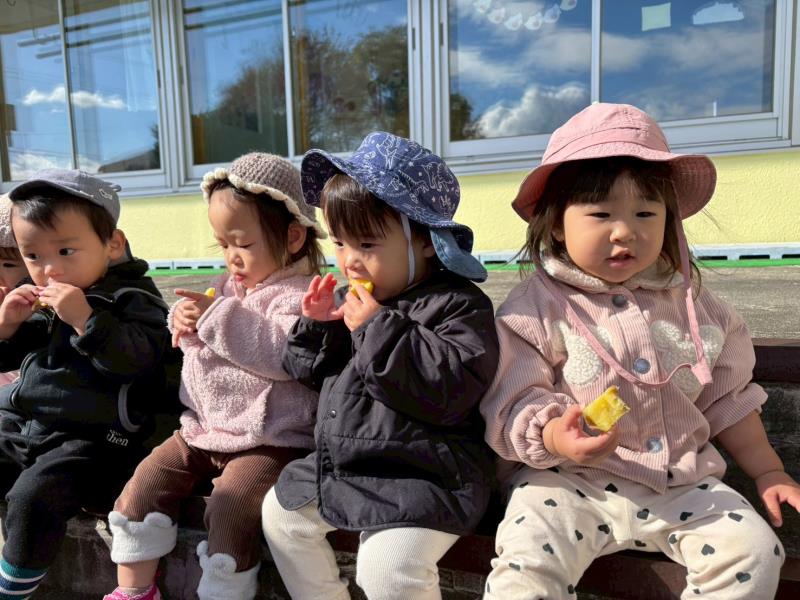 3月12日にお別れ進級パーティーを行いました。全クラスがプレイルームに集まり、ひまわり組さんは進学、他のクラスは進級のお祝いを込めて楽しい時間を過ごしました。卒園でお別れするひまわり組さんと各クラスごとに順番でレクリエーションをしていきました。0・1歳は「せんせいとおともだち」2歳は「ひっつきもっつき」3歳は「おやこドン!」という体でふれあう遊びをし、4歳は「ボール運びリレー」というチームになって競走するゲームをして楽しみました。どのクラスも楽しそうにひまわり組さんと交流を深めていました。食事は2歳児~5歳児までプレイルームで会食をして美味しそうに食べていました。今年度こども園のみんなで行う行事は最後、良い思い出ができました(*^_^*)